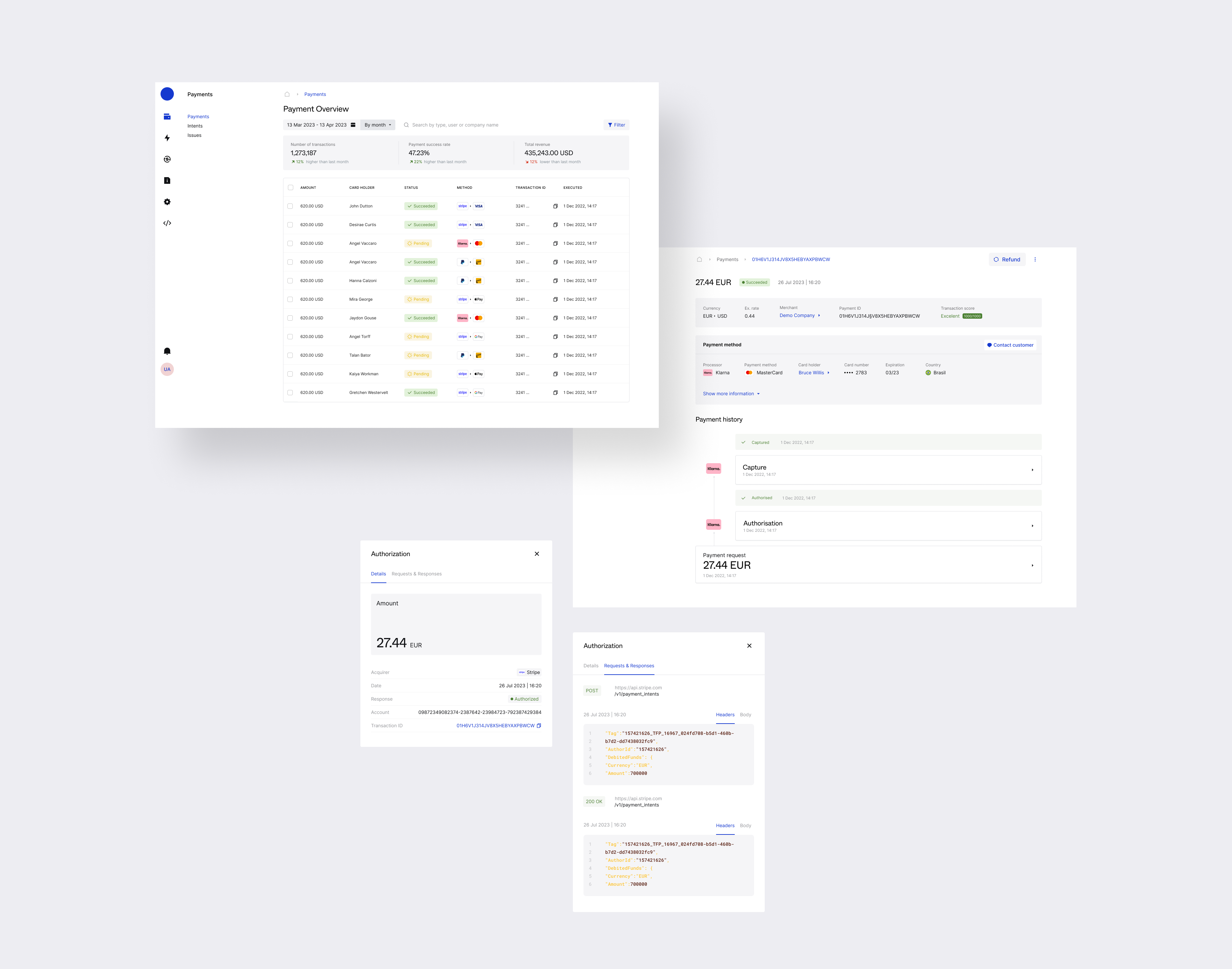 The payment detail view can contain a lot of pieces of information. Instead of showing all of them, we decide only to show the payment method, cardholder information, and payment history. We also considered an option to show a higher volume of information.